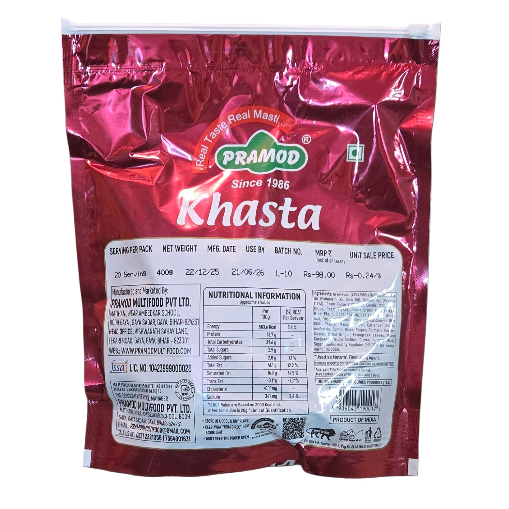 Parmod khasta 400g 95.00 Save:3.00(3%)